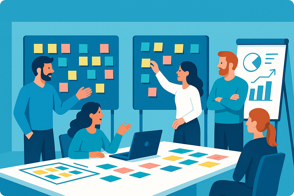 Eintägiger Design Thinking Workshop (Inhouse) zum konkreten Erlernen der Methode anhand eines Praxisbeispiels.