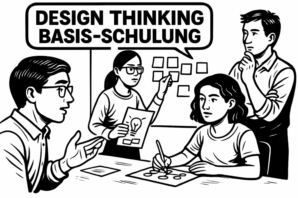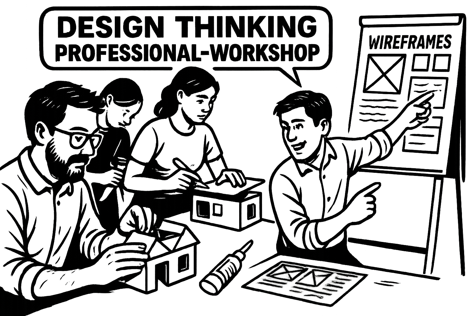 Eintägiger Design Thinking Workshop (Inhouse) zum konkreten Erlernen der Methode anhand praktischer Übungen.